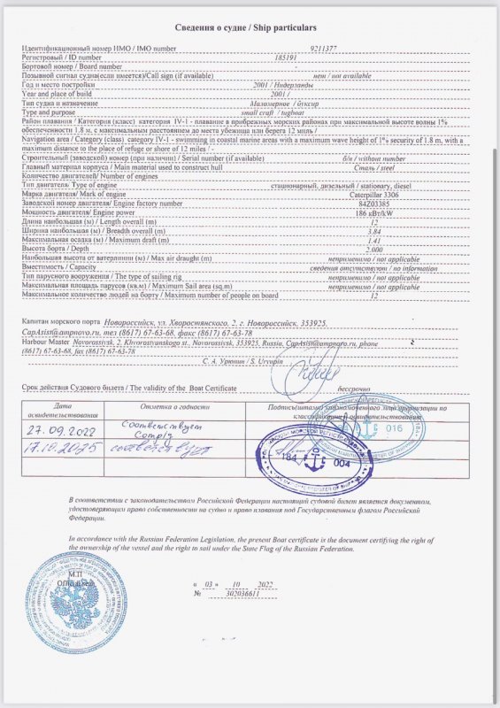 | Основное описание: | ООО «Морской сервис» продает Буксир-толкач 186 кВт для морских работ . Малый буксир-толкач DAMEN PUSHY CAT 1204 предназначен для любых операций в море и портах. Высокая маневренность буксира - большое преимущество перед буксирами большего размера при оказании помощи судам в перемещении по узким участкам. Буксир построен в 2001 году, место постройки - Нидерланды. Отличное техническое состояние. В октябре 2025г. буксир прошел промежуточное освидетельствование в РМРС. Следующее прохождение РМРС в 2027 году. Буксир находится в г. Севастополь, Портовая 17. |